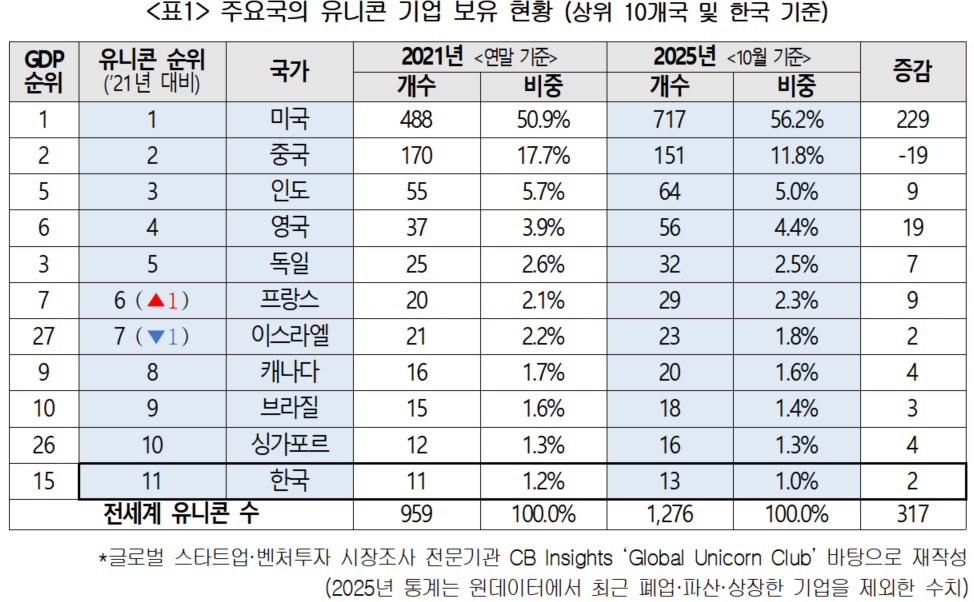 韓 유니콘 기업 13개로 세계 11위.. 코로나 이후 美 229개 늘 때 2개 증가