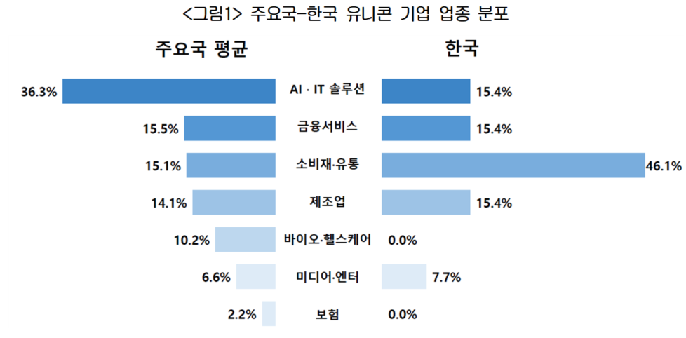 - 주요국 유니콘 3곳 중 1곳(36%)은 AI·IT솔루션 기업 ... 韓 유니콘은 46%가 소비재·유통 분야